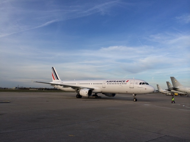 I don’t know. Maybe I’m just thick but I just don’t get it. Apparently we’re booked on a HOP flight. But so far this looks and feels a lot like the usual Air France. Check-in is done by Air France, the gate is manned by Air France staff and the aircraft standing at the gate has the full old Air France livery. It’s cool though to have the opportunity to walk across the apron and board the aircraft the old fashioned way.