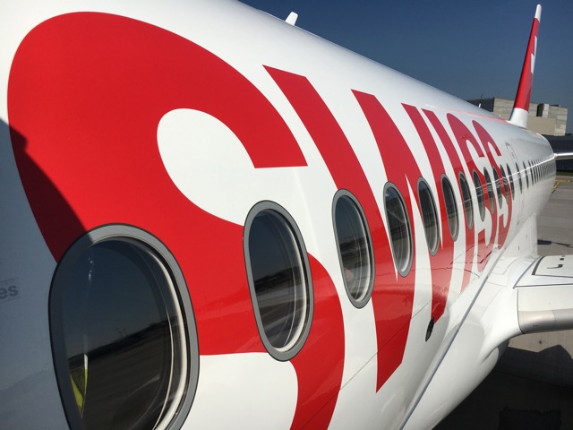 SWISS does not have a cabin divider on this aircraft. There are four rows of Business Class and the only separation is a small sign on the backrest of the aisle seat on row 4 which is marked ‘Business Class’ on the side facing forward, and ‘Economy Class’ on the side facing the rear of the aircraft.