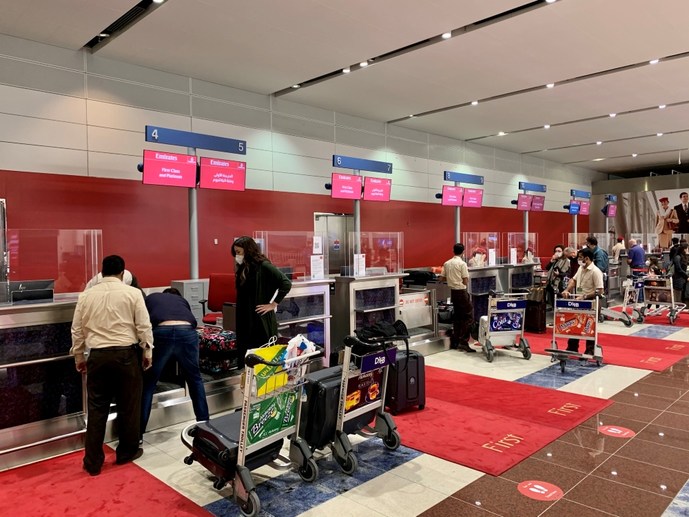 Emirates checks in at Terminal 3, and there is a dedicated section of the terminal for Business and First Class check-in only. I wouldn’t say the place is teeming with people when I arrive, but it’s certainly a lot busier than I would have expected in the current situation.