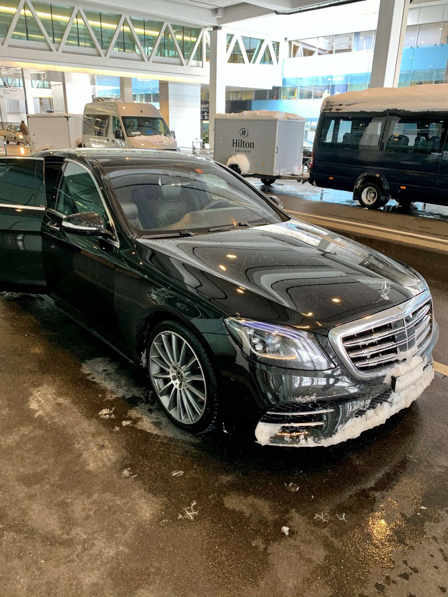 My driver today is a friendly young lady. She is quite petite and looks oddly out of place behind the steering of the enormous Mercedez. But she does a brilliant job and tells me not to worry about the copious amounts of snow everywhere. The drive back to Basel takes us a bit less than an hour and is very comfortable.