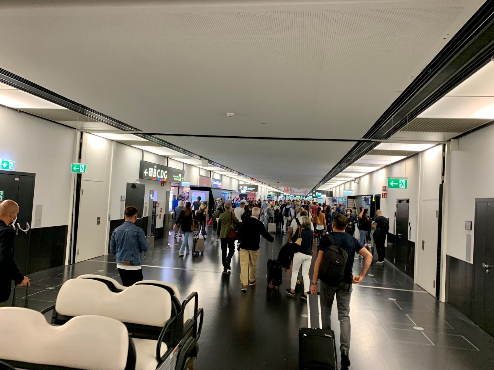 Eventually we land in Basel after a flight time of one hour and ten minutes. The cabin crew announce that deboarding will be by seat numbers. Passengers should remain seated until their row is called. In theory, it may make a lot of sense to deboard the plane in such a way. But in practice, the sad truth is that it is completely useless: Basel airport is on French soil and has a French and a Swiss sector. There is one long corridor that connects the arrival gates to the head of the terminal building and immigration. Even though Austria and France are both part of the Schengen treaty, France has suspended the free movement of persons, which means that they have reintroduced border controls. This does not apply to Switzerland. But the exit to Switzerland is only at the very end of the corridor, meaning there is no way for passengers entering into Switzerland to bypass the queues for immigration for France. Regrettably, we land right after two full easyJet Airbus A 320s, and the queue for immigration is endless. It takes me forty minutes to reach the head of the queue. At least by the time I arrive at the luggage belt, my suitcase is already there.