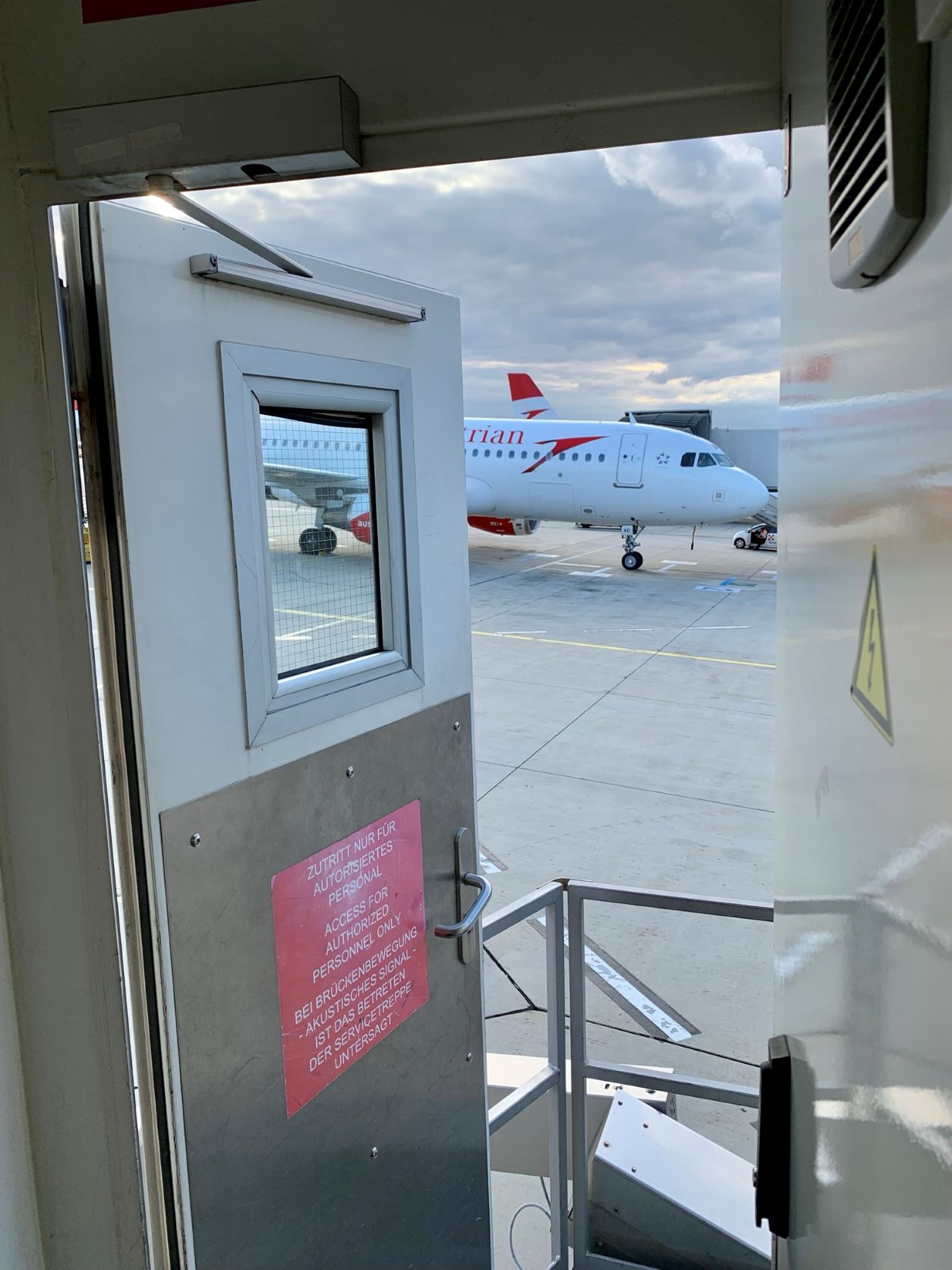 Boarding for the flight starts with a slight delay and takes for ever. This is largely due to the fact that in Austria it is mandatory for passengers to wear FFP2 masks. Every passenger wearing a standard issue surgical mask is stopped by the L1 door and given an FFP2 mask to wear instead, which they must put on in front of the cabin crew before they are allowed beyond the galley and into the cabin.