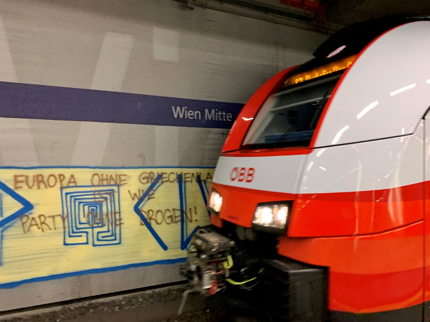 Today I’m on my way from Vienna back to Basel. My flight departs at 17h40 and the hotel refuses to grant me a late check-out. So I exit the SO/ Vienna hotel just after 12h00 and make my way to Wien Mitte railway station to dump my suitcase and bag in a locker. It’s only ten minutes on foot from the hotel to the station. You could take public transport instead, but I suspect that would probably take longer.