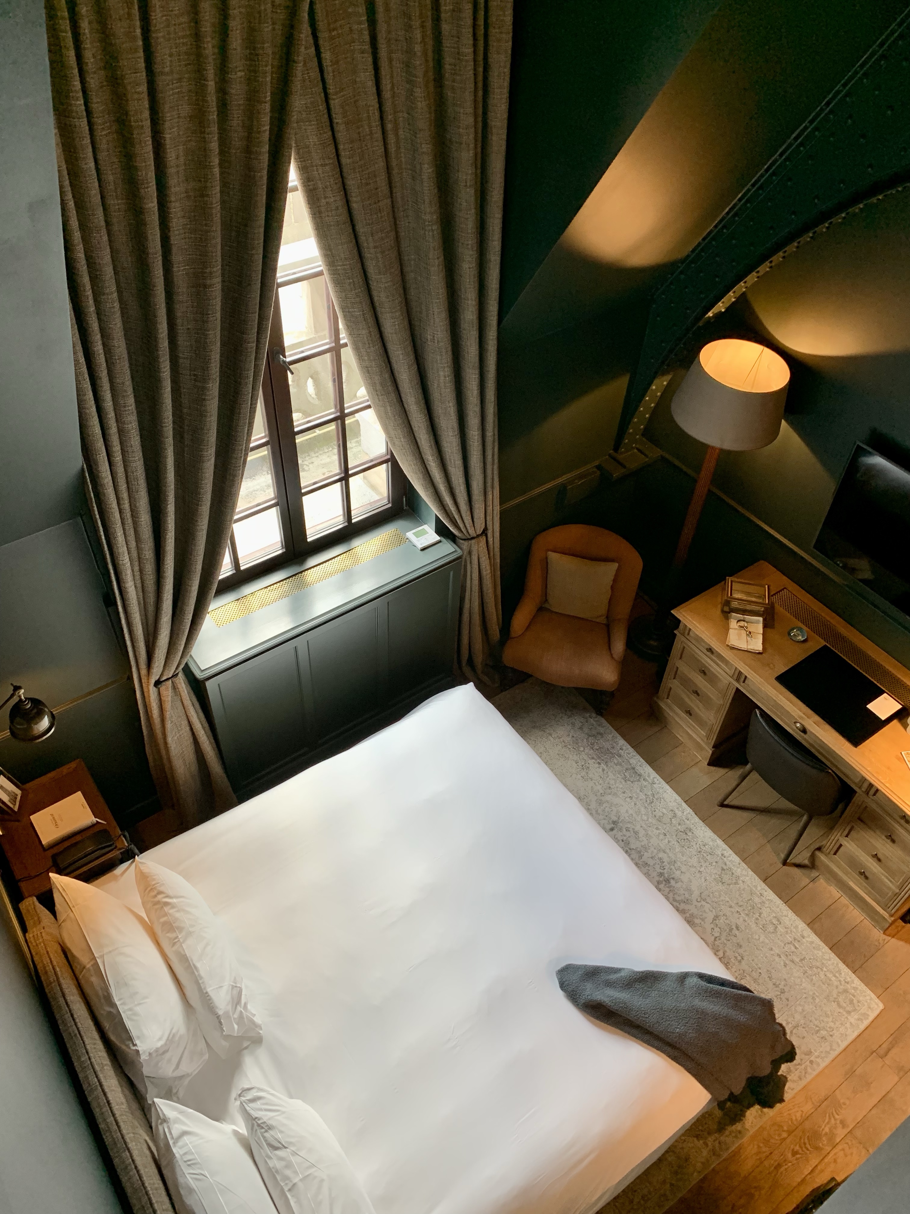 Looks like a lovely hotel, but again with the strange layout of having the shower on a different level than the bedroom. But still, a charming hotel overall.