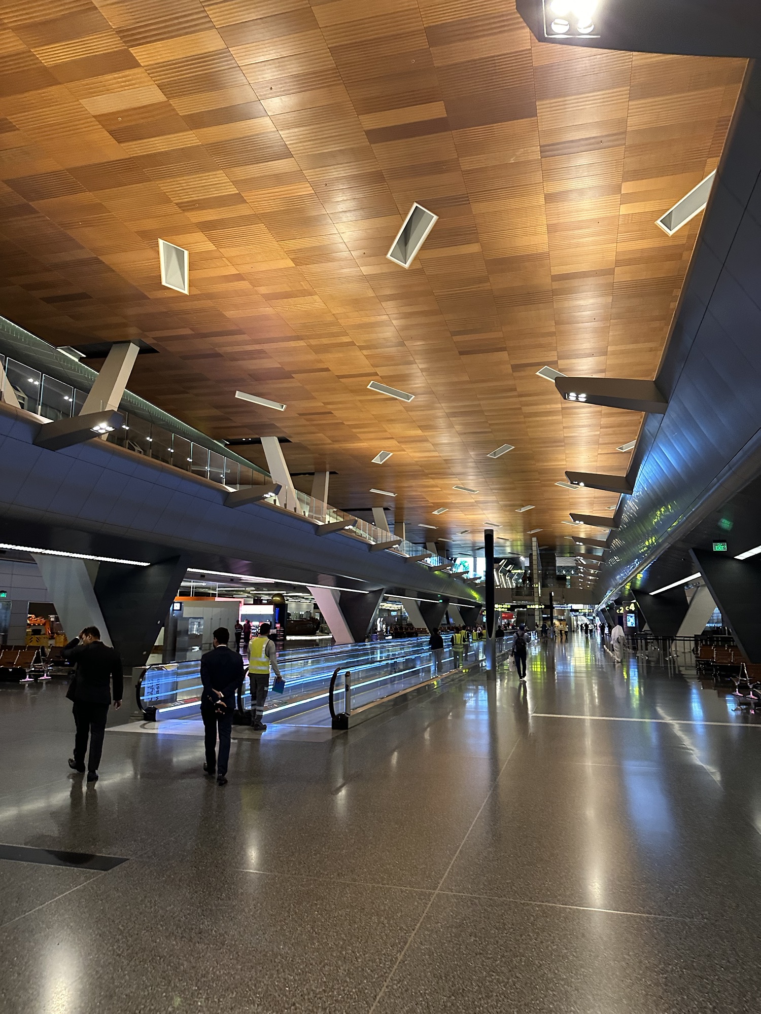 I exit the airbridge directly into the transit area of Doha Hamad International Airport. Originally, I should have continued on from Doha to Dubai at 19h15. However, with the inbound from Paris delayed by over four hours, I’ve been rebooked to the next flight to Dubai at 00h55.